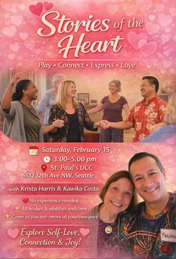 Through gentle movement 💃, voice 🎶, storytelling 📖, and stillness 🧘, we’ll explore the stories that live in our hearts—stories of self-love, connection, and community. InterPlay’s simple, playful practices invite authenticity, creativity, and ease.